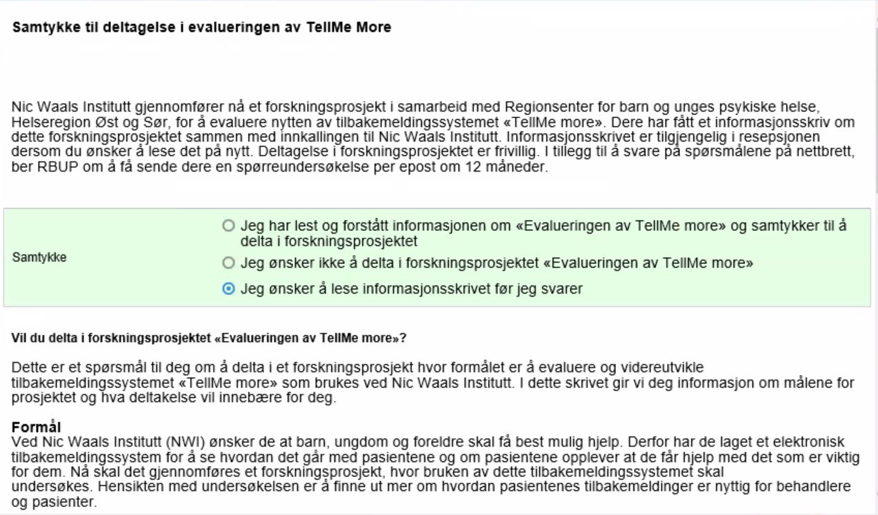 For å bidra til økt kunnskap og bygge videre på forskningen som er gjort, vil Nic Waals Institutt gjennomføre utviklingen og implementeringen av tilbakemeldingssytemer i klinikken i tett samarbeid med Regionsenteret for barn og unges psykiske helse, region Øst og Sør (RBUP Øst og Sør) og Universitetet i Oslo (UiO).